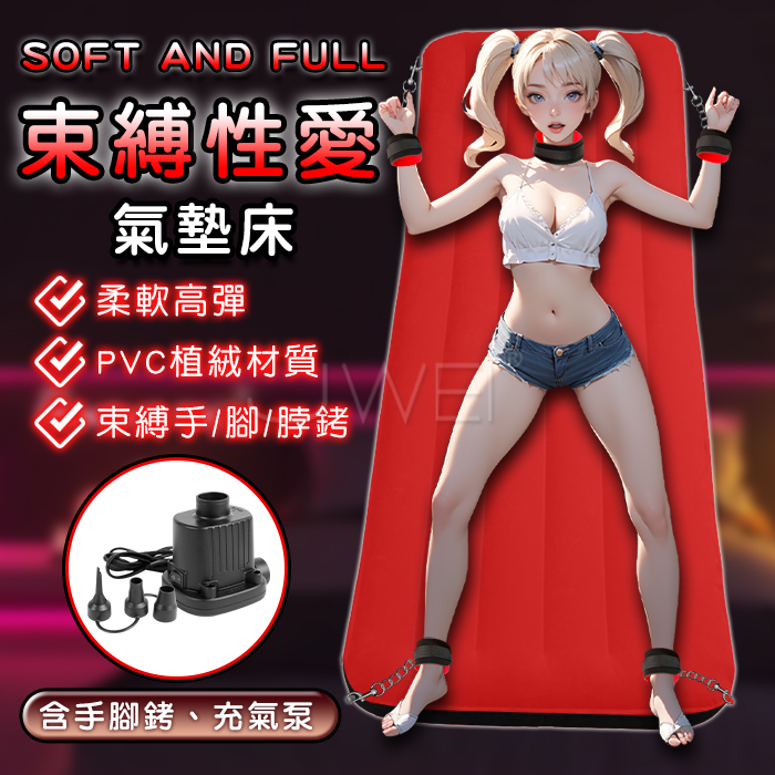 束縛氣墊床.束縛手/腳/脖銬+紅黑拼接輕柔植絨彈力性愛床墊【附贈電動打氣泵】