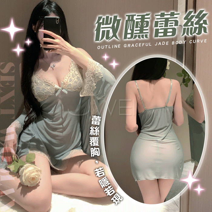 | 典雅女伶.性感蕾絲開衩真絲睡衣(黑色)