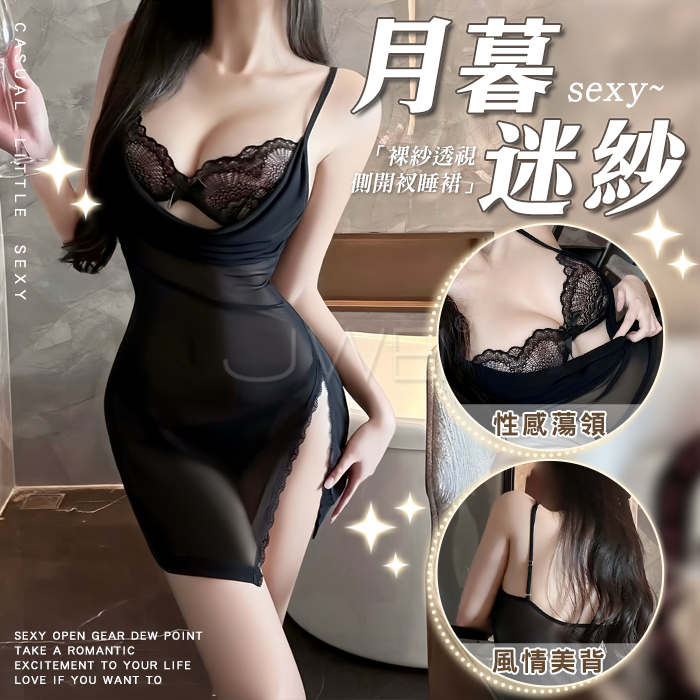 | 情趣睡衣!泡泡袖內搭頸環牽引比基尼四件式套裝 - 可小圓領或一字肩﹝黑﹞
