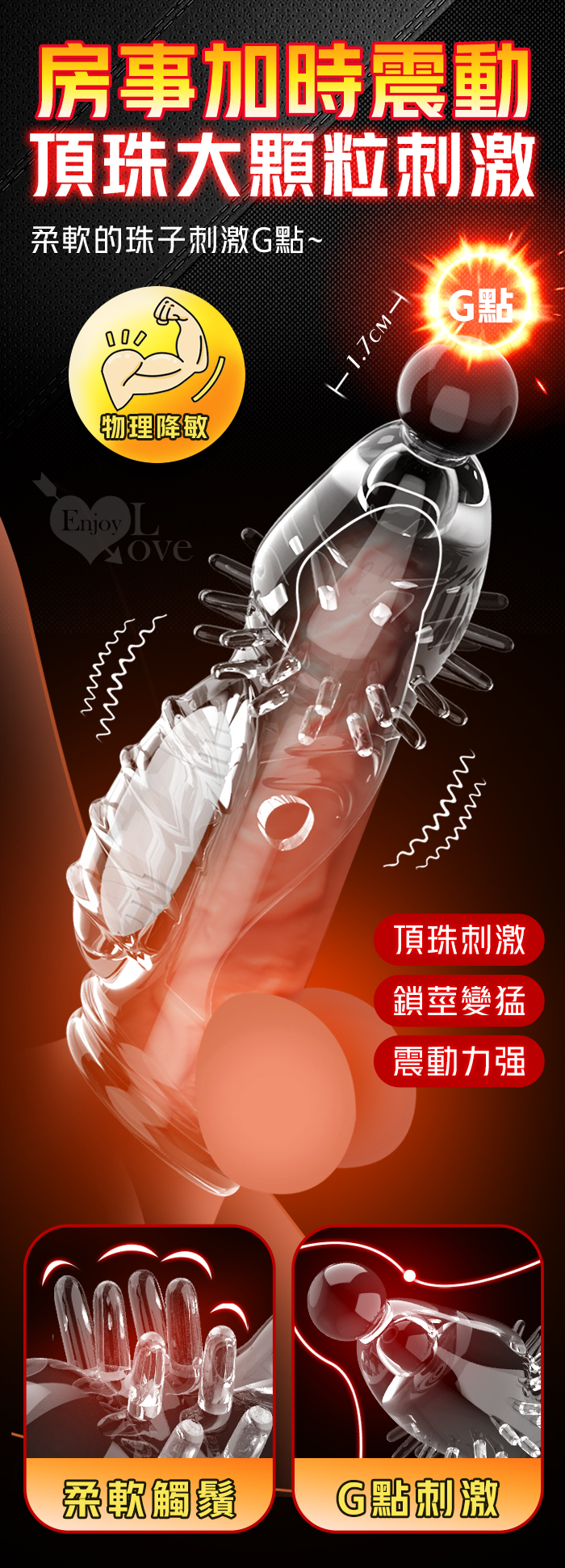 ►您現在的位置:首頁>取悅 ‧ 震動龍麟30長肉刺大頂珠老二套~鏤空/凸點/環紋/增長增粗物理持久隱身加強套﹝透明色﹞
