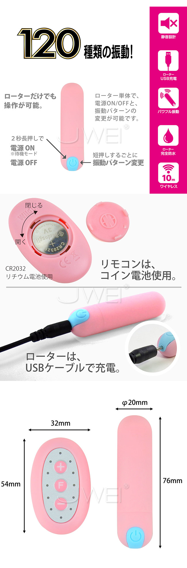 二種類の合わせると、なんと120通りの振動種類!!それぞれ、