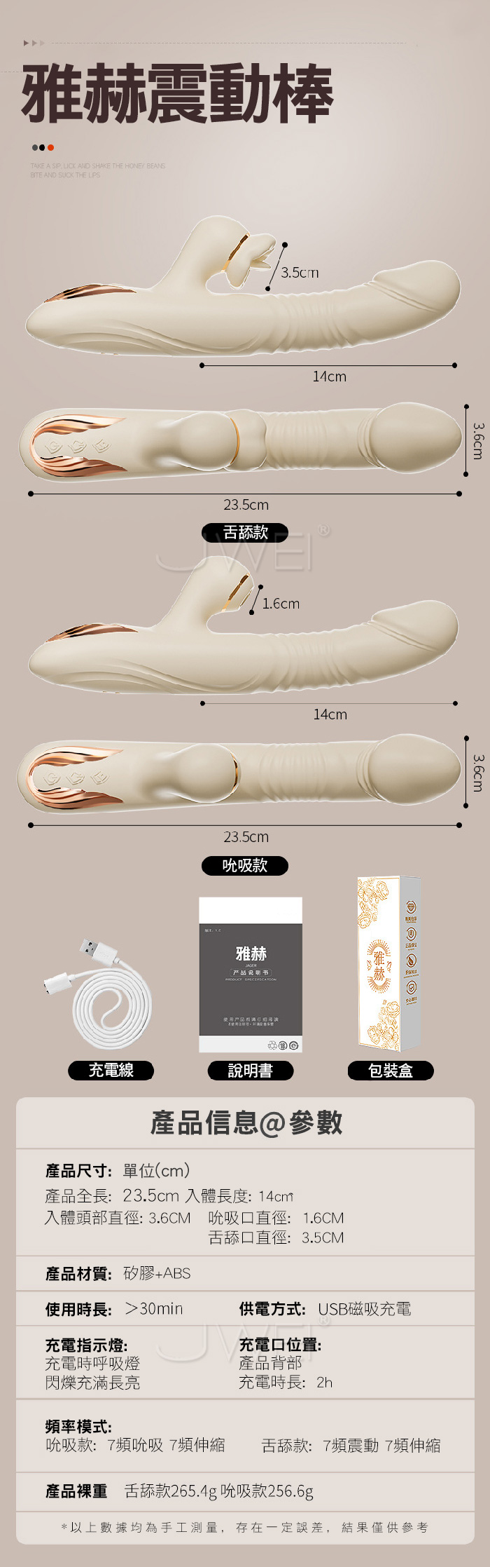 | 雅赫.7頻強勁伸縮+7頻緊含吮震 螺紋摩擦仿真加溫震動棒【吮吸款】