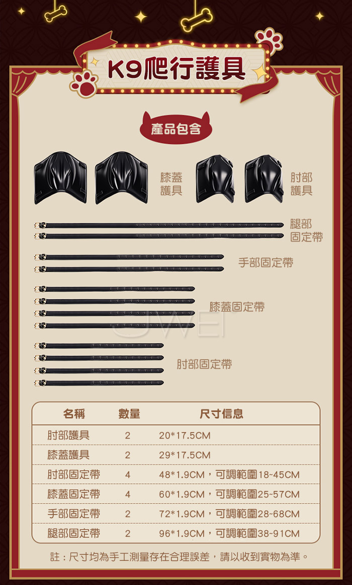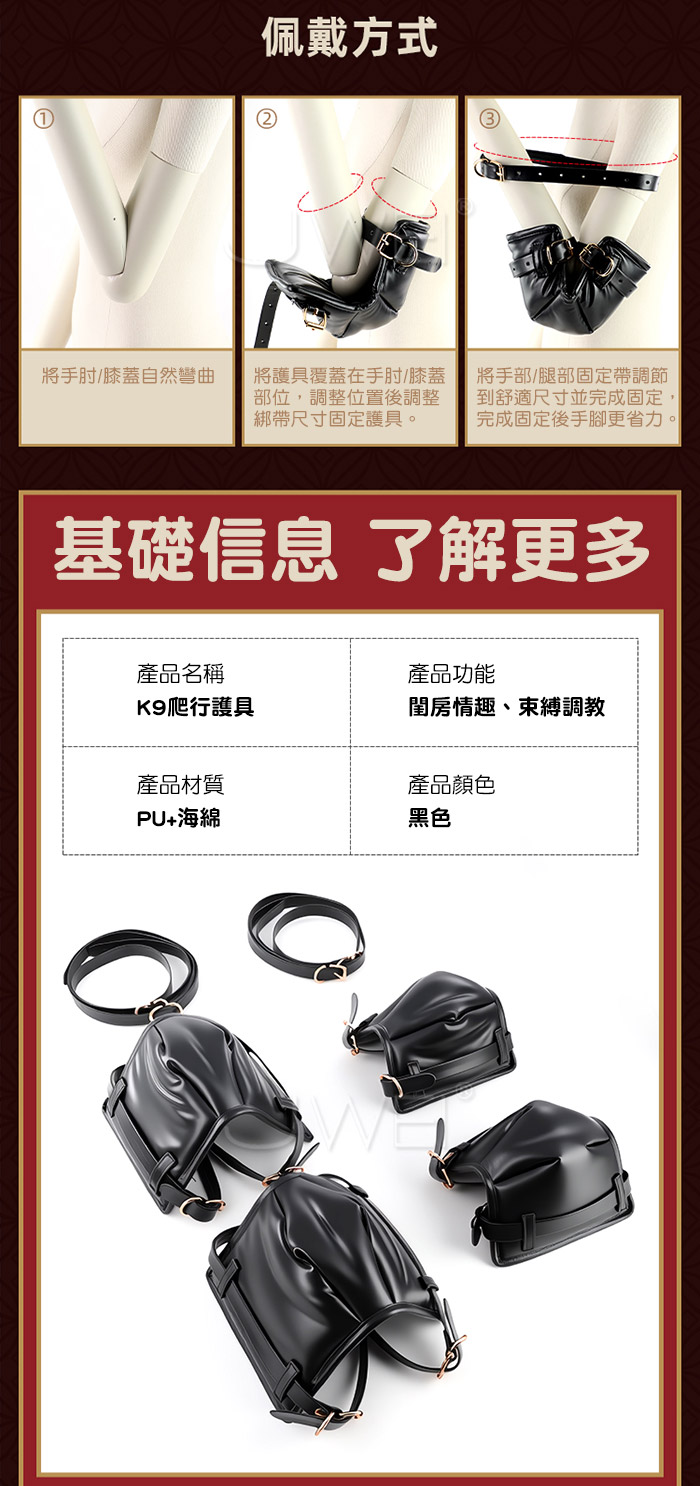 | K9爬行護具.肘膝防護加厚海綿 SM房事調教束縛套裝