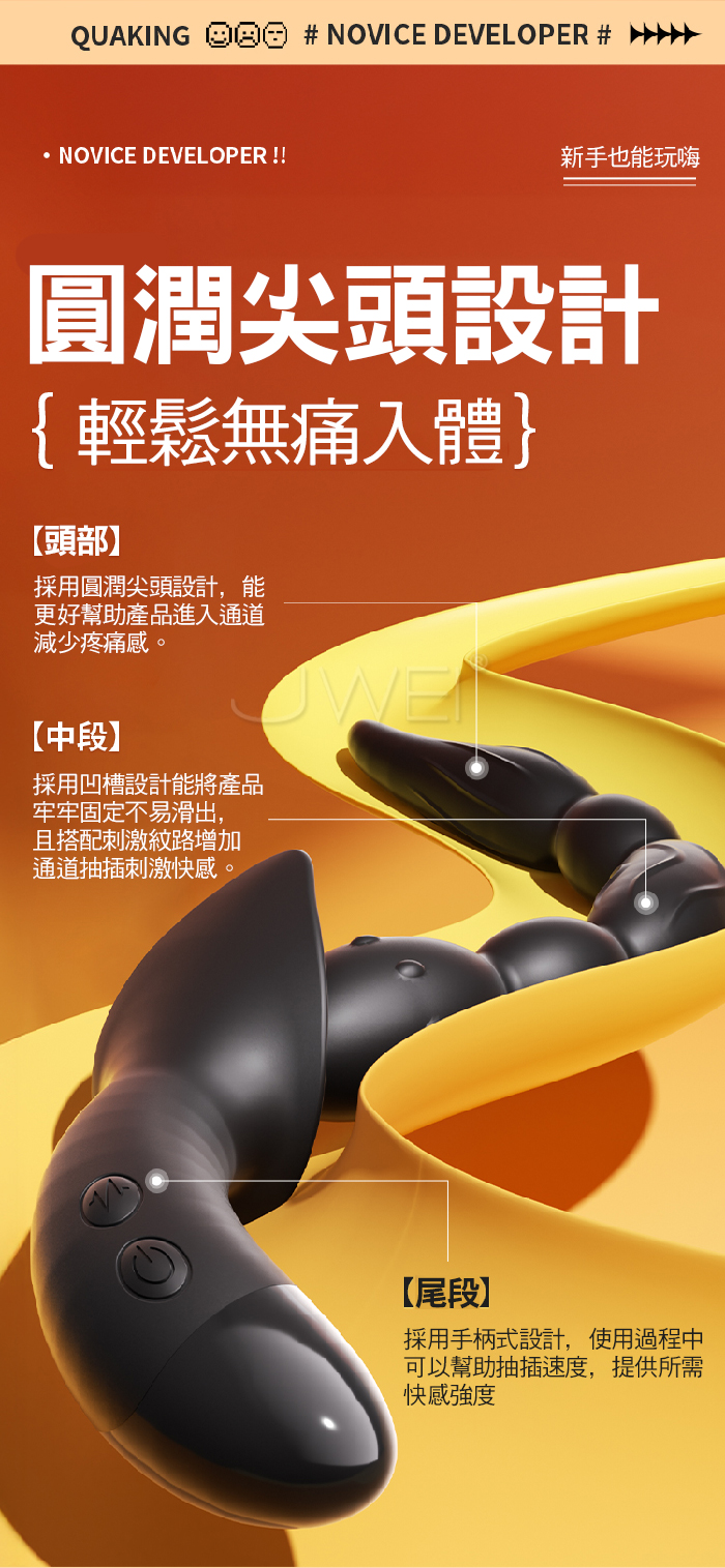 | 極樂拉珠.10段三馬達高頻強震 點處爽潮任意彎曲激震後庭拉珠棒