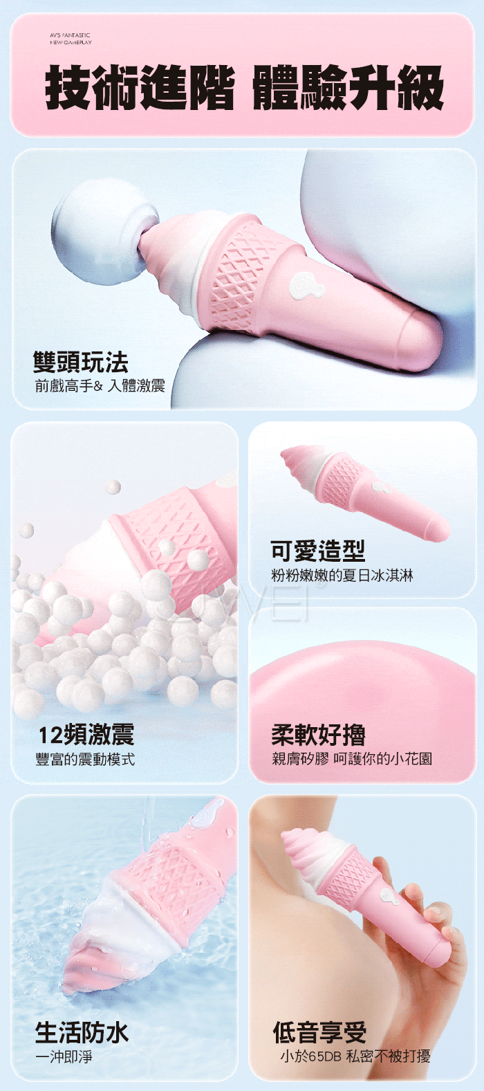 | 謎姬 MizzZee.冰淇淋甜筒.雙頭12頻爽麻強震 Q萌造型AV按摩棒