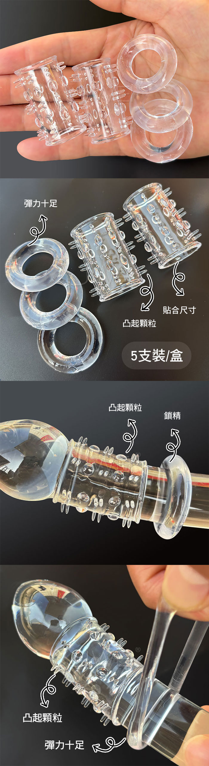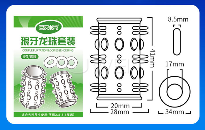 首頁>取悅 狼牙龍珠.顆粒刺激降敏加時高彈鎖精套環【5入裝】
