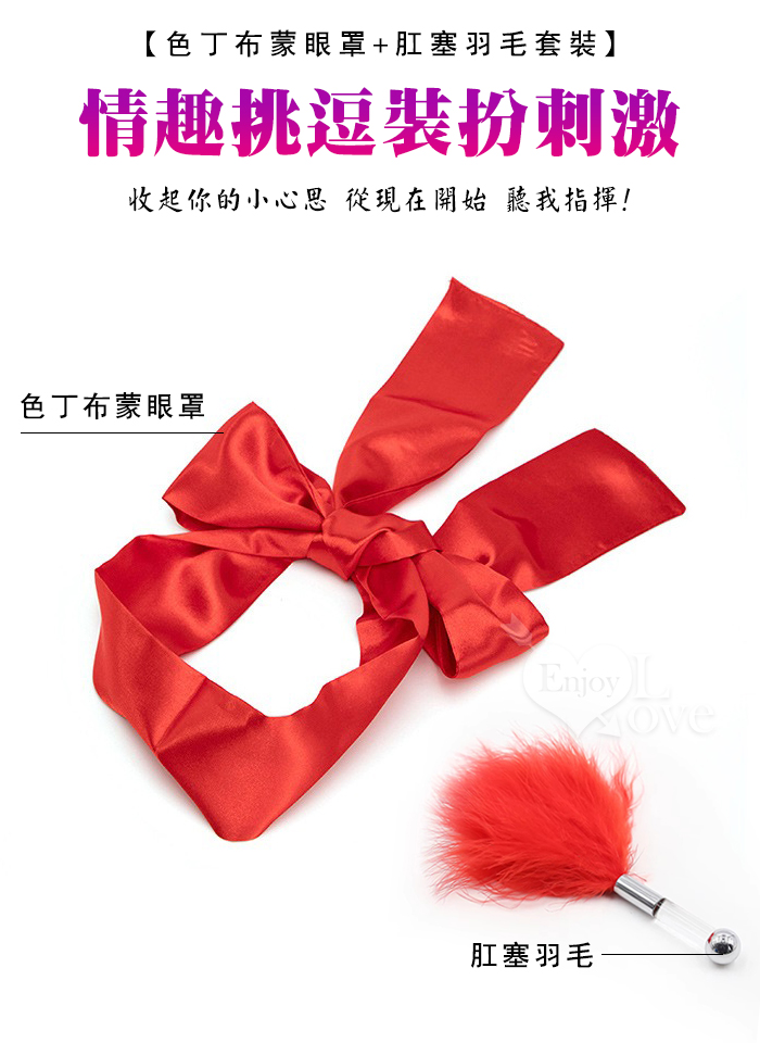 色丁布蒙眼罩+肛塞羽毛套装﹝挑逗+裝扮刺激﹞經典黑