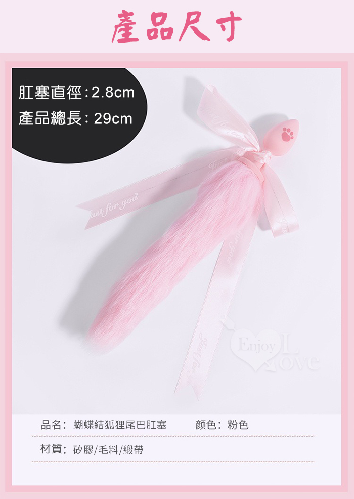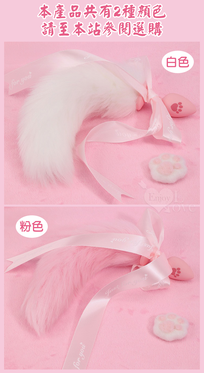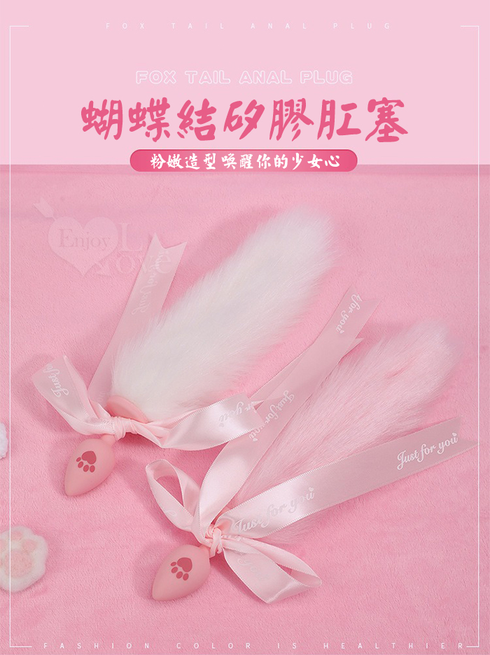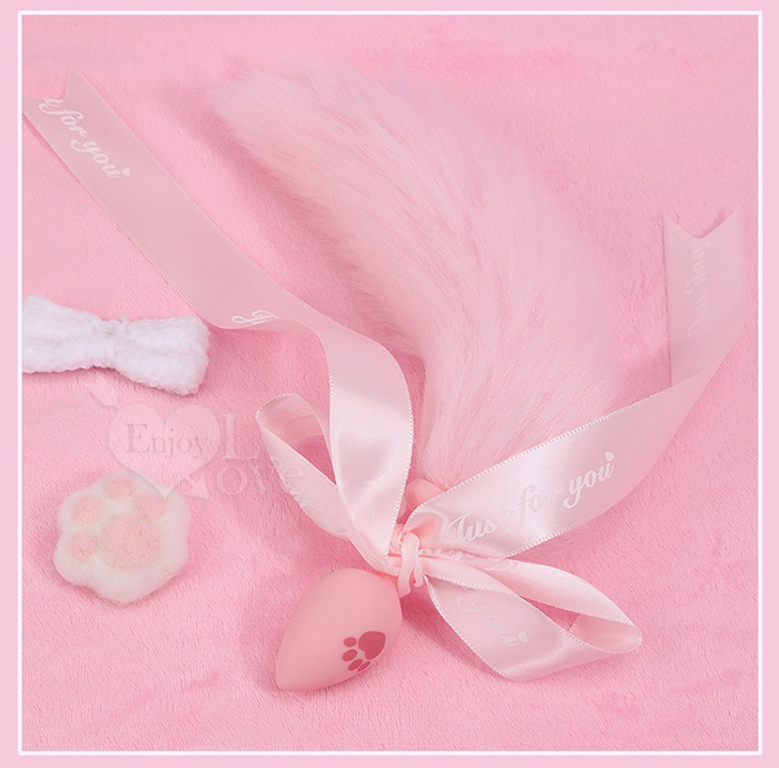 激性扮演 ‧ 蝴蝶結狐狸尾巴 可愛猫爪印親膚矽膠肛塞﹝粉紅﹞