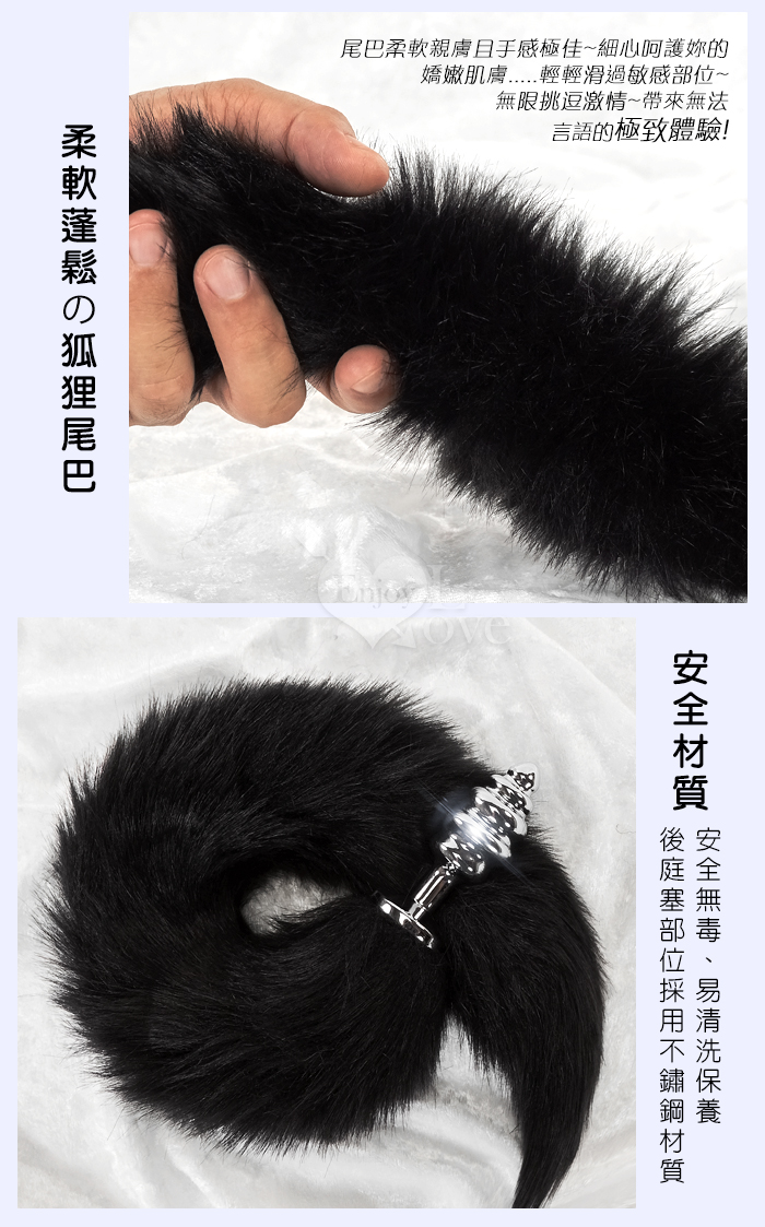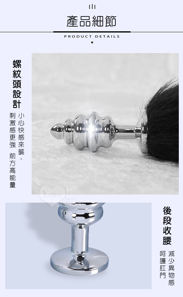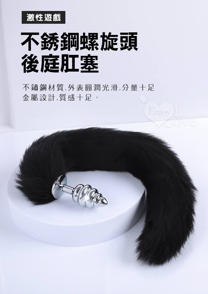 Sporting激性扮演遊戲 ‧ 人造毛尾巴+不銹鋼螺旋頭後庭肛塞 - 黑﹝可組裝拆卸﹞