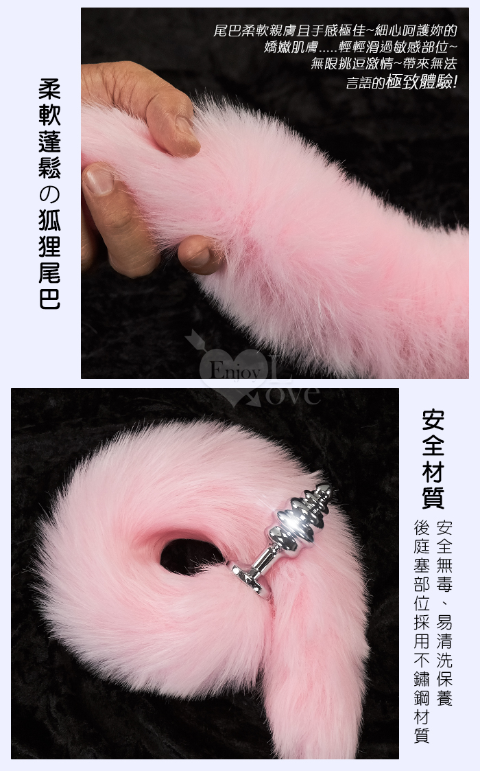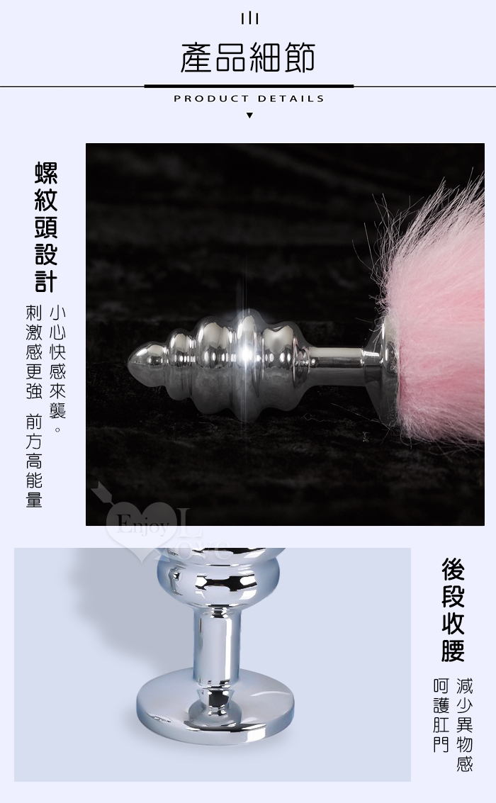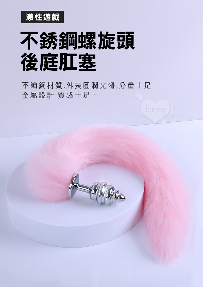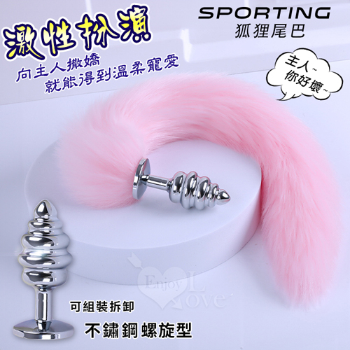 Sporting激性扮演遊戲 ‧ 人造毛尾巴+不銹鋼螺旋頭後庭肛塞 - 粉﹝可組裝拆卸﹞