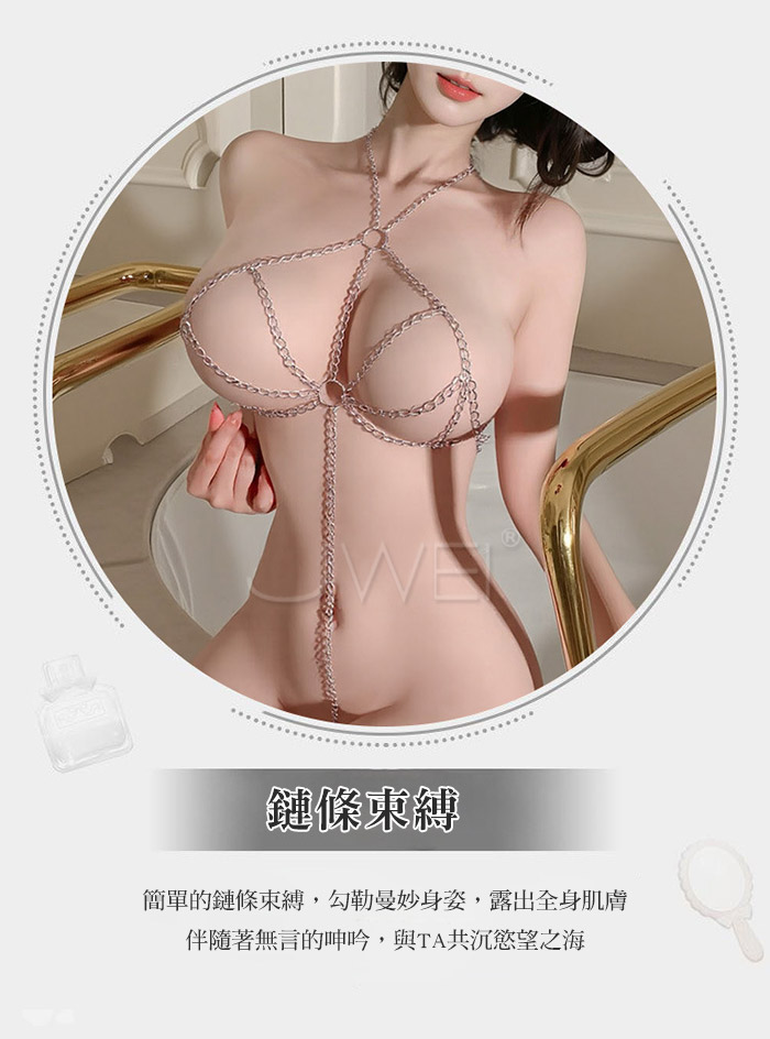 ►您現在的位置:首頁>鏈鎖激愛.火辣鏈條鎖胸束縛鈴襠三點一體式金屬鏈衣