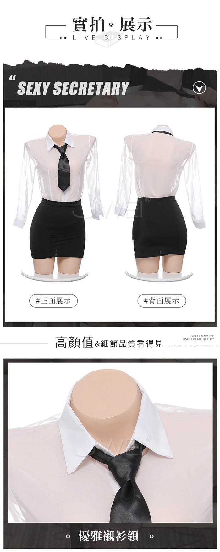 ■內容物:領帶+襯衫+包臀裙+T褲 ■適穿尺寸:FREESIZE ■彈性:彈 ■未撐開平量尺寸正負誤差1~2cm,1吋=2.54cm ■注意事項:基於保障消費者個人衛生,此貼身衣物恕不接受退換貨。 (如為商品本身暇疵,接受七日內換貨,請勿試穿,謝謝您)