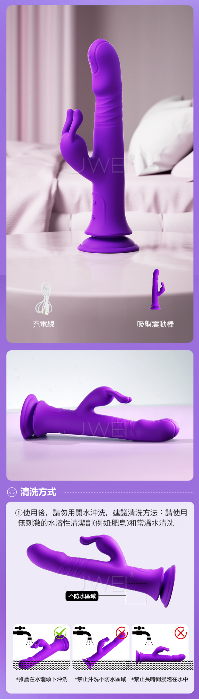 ■功能: 10頻搖擺伸縮震動,10頻兔頭拍打