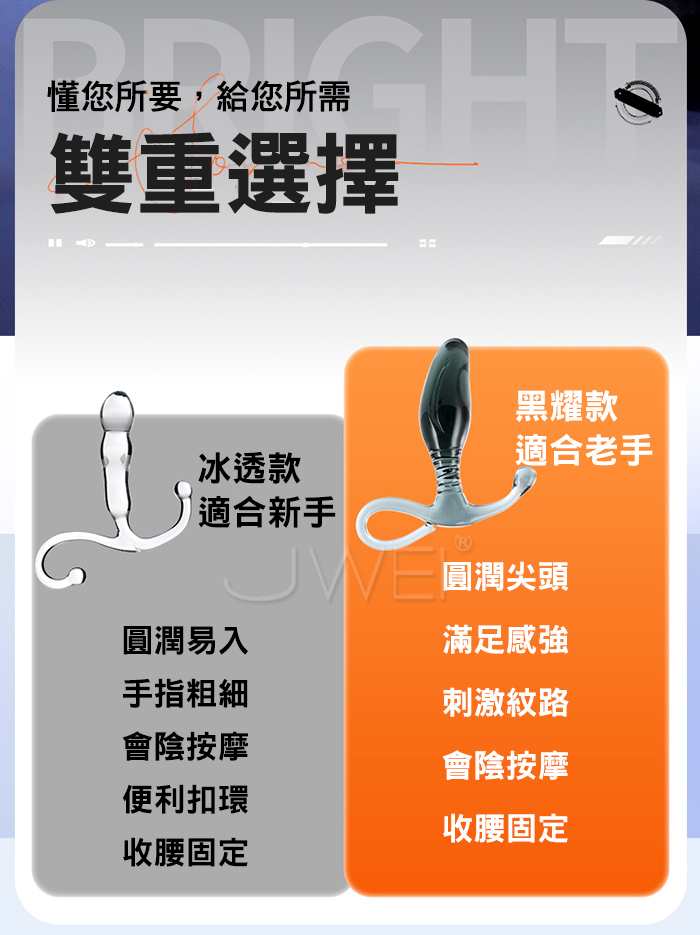 懂您所要 給您所需,爆爽前列腺 冰透款-適合新手/圓潤易入/手指粗細/會陰按摩/便利扣環/收腰固定 黑耀款-適合老手/圓潤尖頭/滿足感強/刺激紋路/會陰按摩/收腰固定 產品規格 ■材質: 玻璃 ■規格: 詳如圖片標示