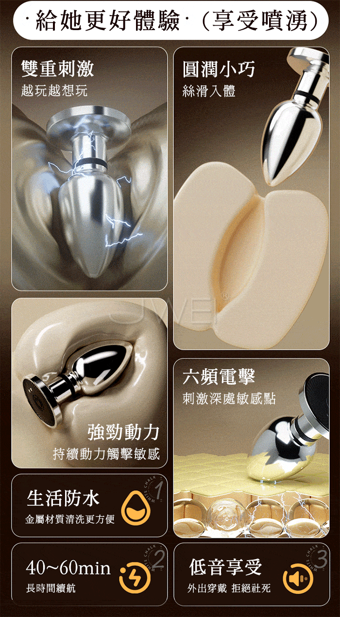 ►您現在的位置:首頁>謎姬 MizzZee.電擊肛塞.6頻微電擊刺激+10頻強震金屬遙控後庭調教肛塞