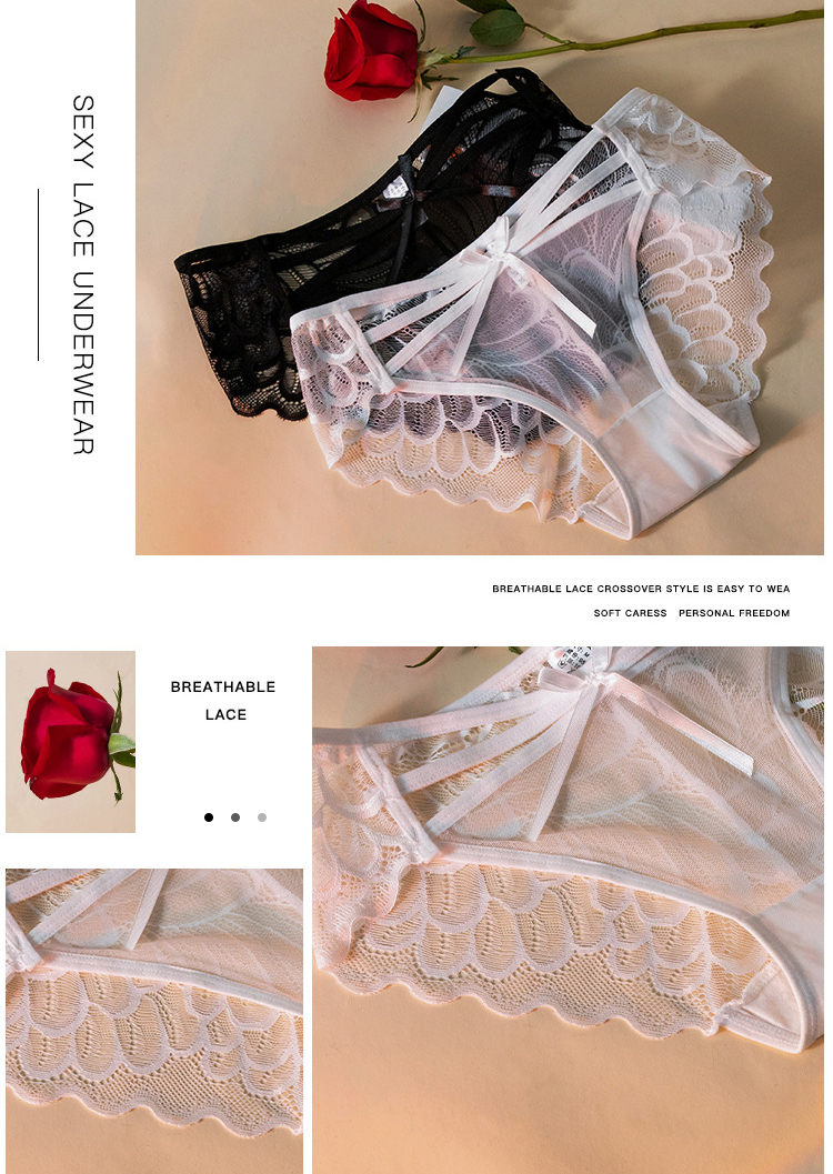 法式輕奢風 無感輕薄蕾絲三角內褲 純棉底檔