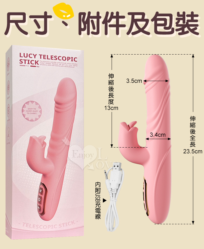 | Soul Choice 露西 ‧ 動感10X伸縮10X舔震仿真老二按摩棒﹝衝擊蜜穴+唇舌強震+智能加溫+親膚矽膠+靜音防水/便捷充電﹞粉