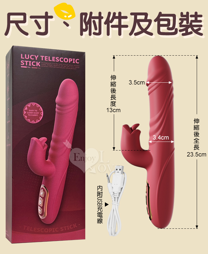 | Soul Choice 露西 ‧ 動感10X伸縮10X舔震仿真老二按摩棒﹝衝擊蜜穴+唇舌強震+智能加溫+親膚矽膠+靜音防水/便捷充電﹞紅