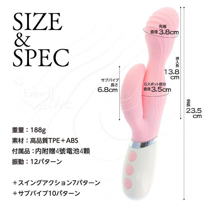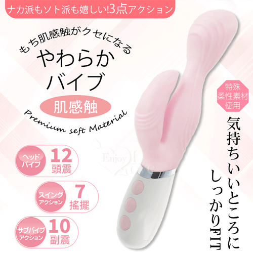 | 日本NPG.やわらかバイブ 肌感触 12頻頭震+7搖擺+10副震多功能柔和按摩棒-粉