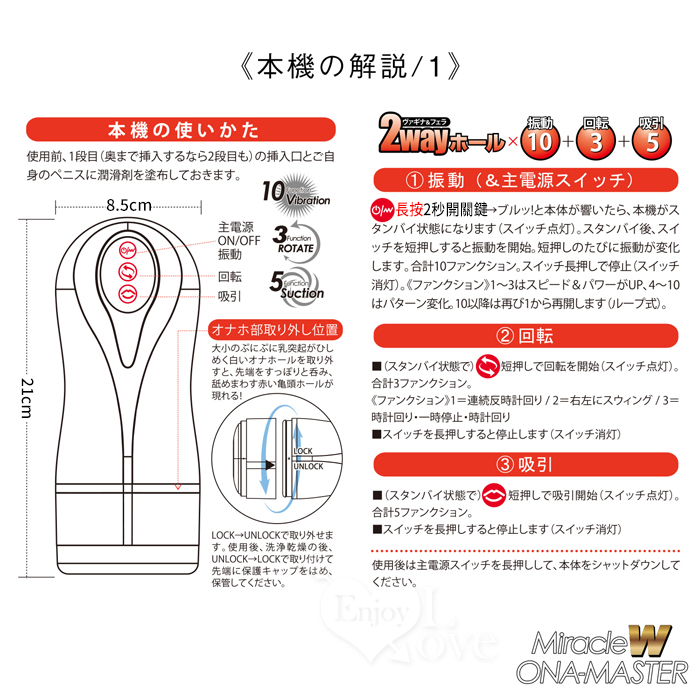 日本NPG.奇蹟Wオナマスター 2段式10x3x5震動迴轉吸引專家級口交技巧自慰器