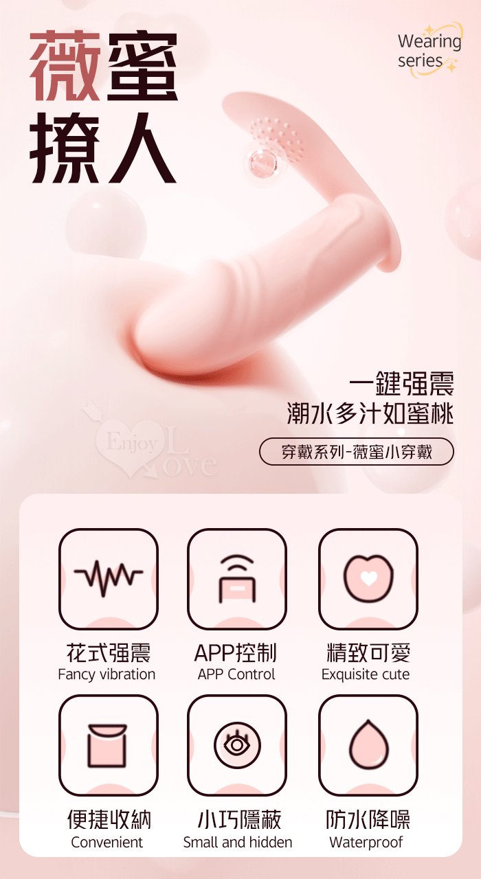 ROSELEX 勞樂斯 ‧ 薇蜜 10頻震動顆粒刺激小老二穿戴按摩器 - 可手機APP遙控﹝具兩種操控模式﹞粉