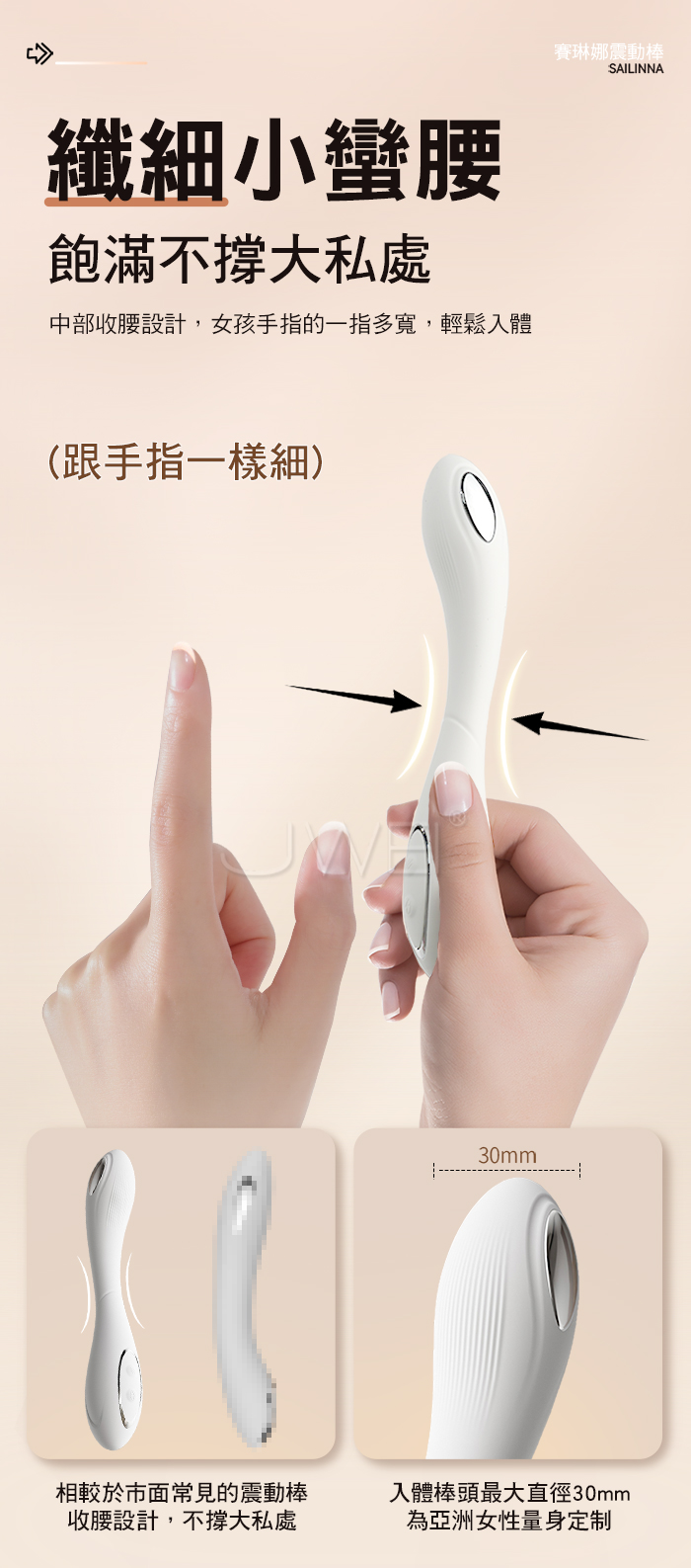 纖細小蠻腰,飽滿不撐大私處,中部收腰設計,女孩手指的一指多寬,輕鬆入體