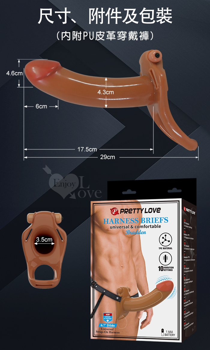 派蒂菈 ‧ Bradden 布拉登 10頻震動/男女共振/空心穿戴超大老二棒