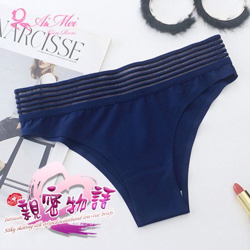 親密物語!絲滑冰絲條紋褲頭低腰三角褲﹝深藍﹞