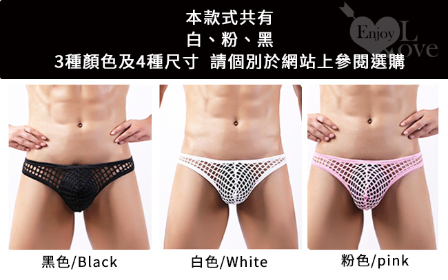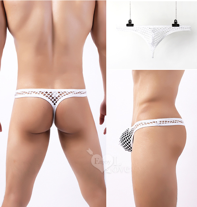 | 《 Enjoy Love 》性感半透大網孔男士丁字褲 - 白﹝S﹞