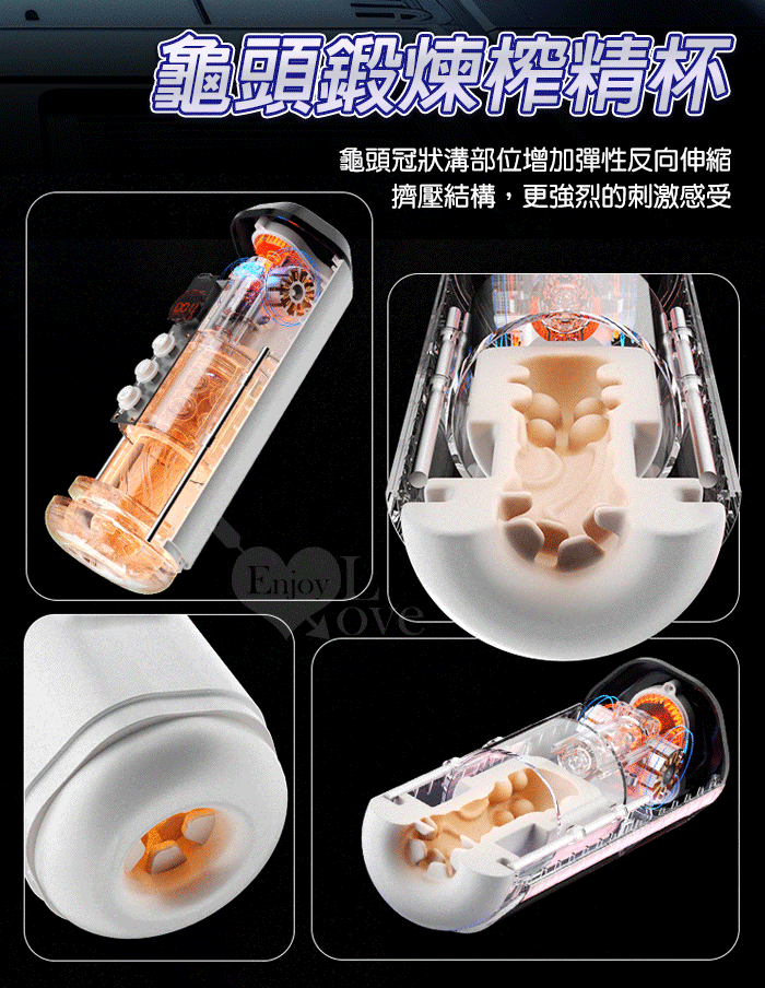 靈犀律動杯 ‧ 智能4頻調控伸縮+語音+計數鍛煉榨精飛機杯﹝四國語音呻吟+顆粒刺激腔道+耳機+USB充電﹞