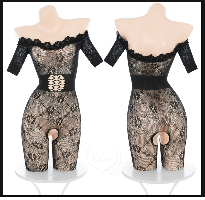 可撕鏤空網紗連身衣|一字美肩緹花設計・免脫開襠裝