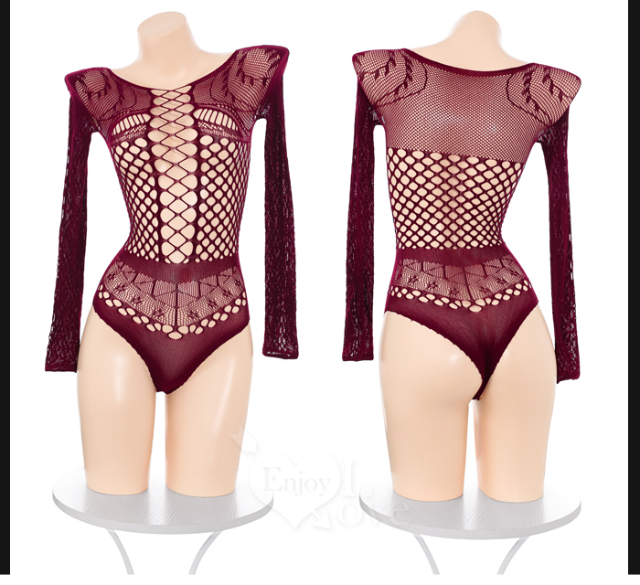 可撕鏤空網紗連身衣|高彈裸膚透視網眼・蜜桃美臀造型