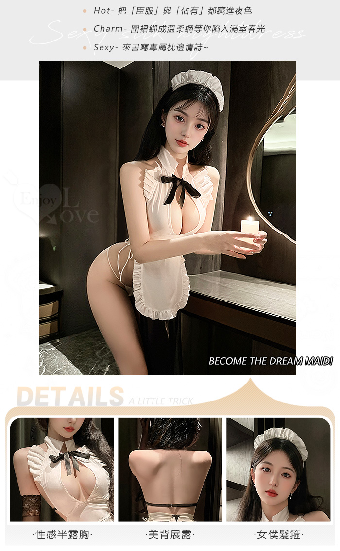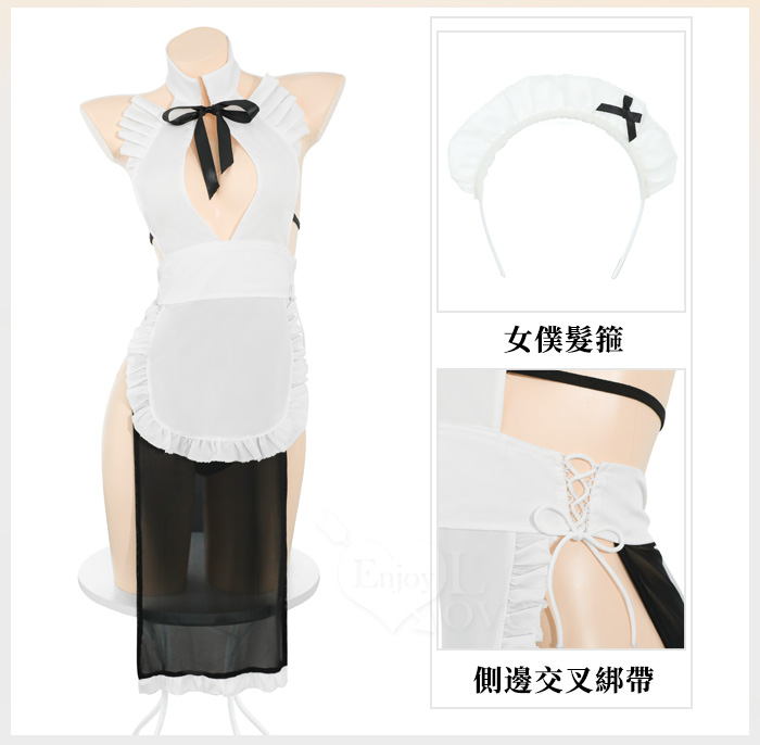 ►您現在的位置:首頁>女僕角色扮演服|木耳花邊水滴美胸連身裙・側綁帶設計四件式套裝
