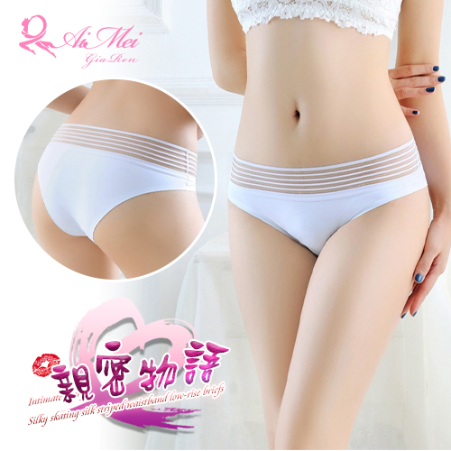 親密物語!絲滑冰絲條紋褲頭低腰三角褲﹝白﹞