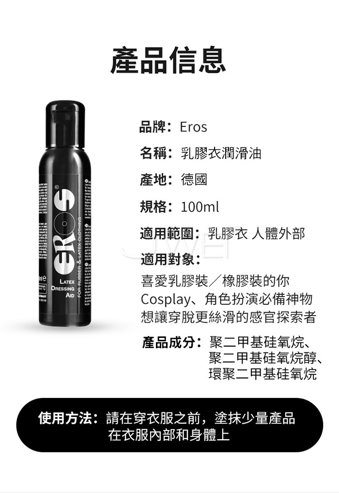 | 德國Eros.Latex Dressing Aid 乳膠衣專用 光亮保養潤滑油 100ml