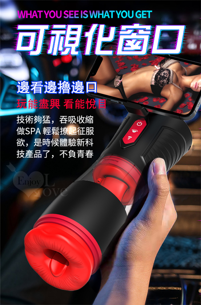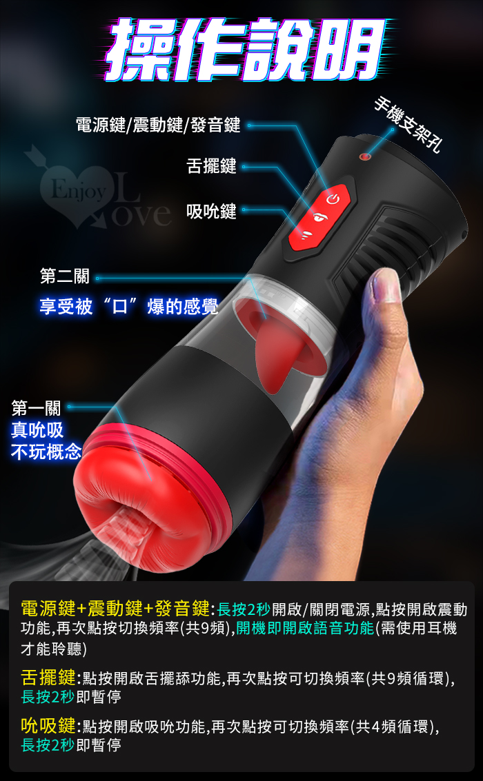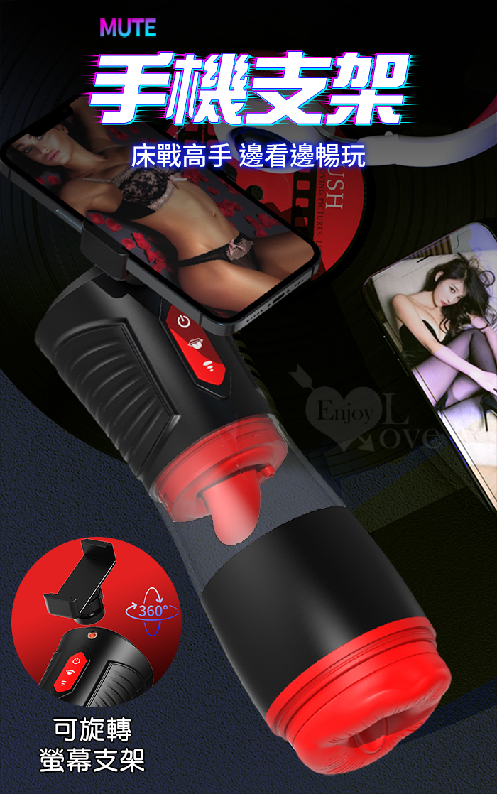 Hgod 007-II ‧ AI新智能自動舌舔+吞莖吮吸快感電動飛機杯﹝4頻收縮吸吮X9頻舌擺舔+淫聲耳機+手機架﹞