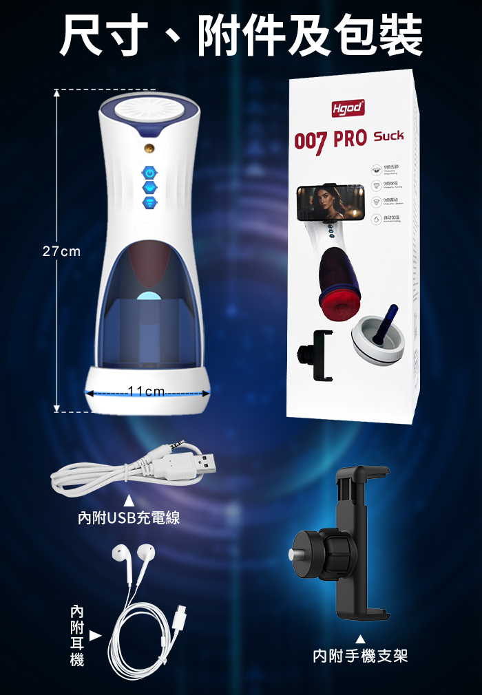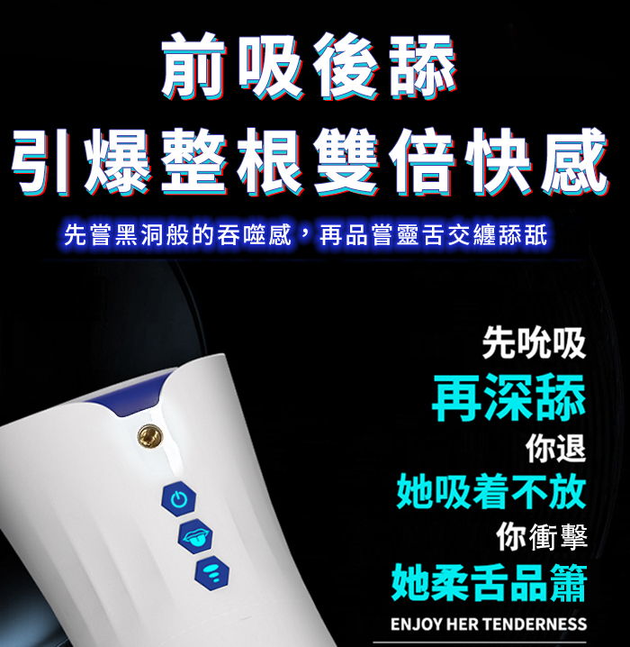 Hgod 007-II 旗艦版 ‧ AI新智能自動舌舔+吞莖吮吸+分體加熱快感電動飛機杯﹝9頻收縮吸吮X9頻舌擺舔+淫聲耳機+手機架﹞