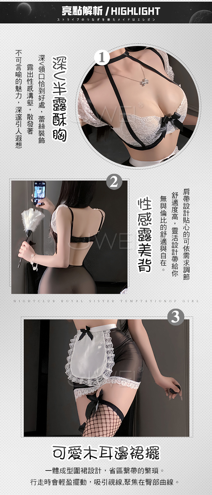 ►您現在的位置:首頁>契約俏女僕.深V低胸蕾絲誘惑美背透紗木耳邊裙擺甜欲女僕裝【上衣+短裙+T褲-黑色】