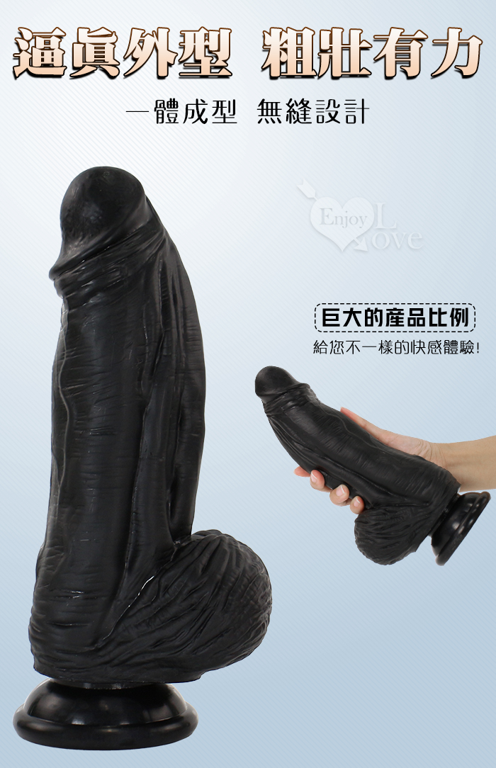 | Eagle 鷹雕~特大號雙層液態矽膠吸盤式逼真粗壯按摩棒-10吋/直徑6.5公分﹝黑色﹞