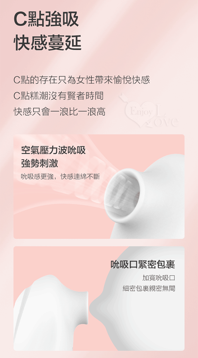 • 空氣壓力波吮吸,強烈吮吸快感,深入刺激陰蒂敏感神經
