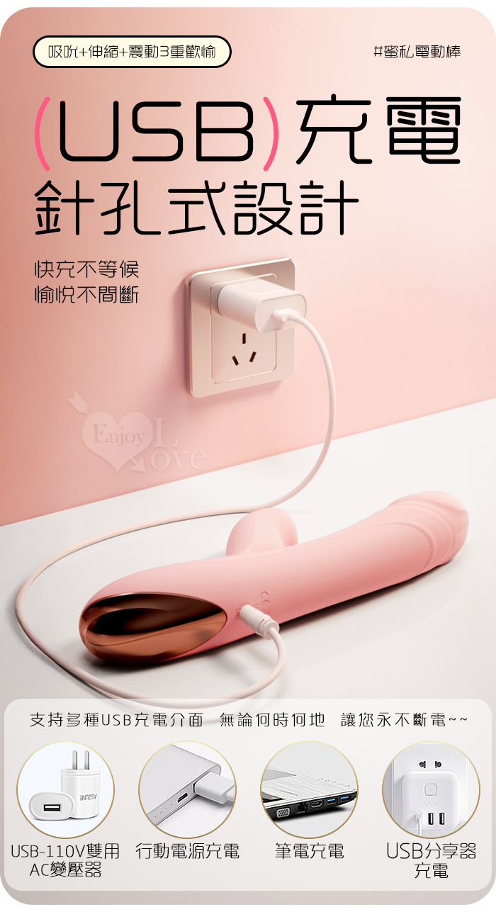 ROSELEX 蜜私 ‧ 伸⦁震⦁吸 三重爆爽多功能按摩棒﹝10頻伸縮+震動/10頻吮舔動~內外同歡~滑順親膚矽膠﹞