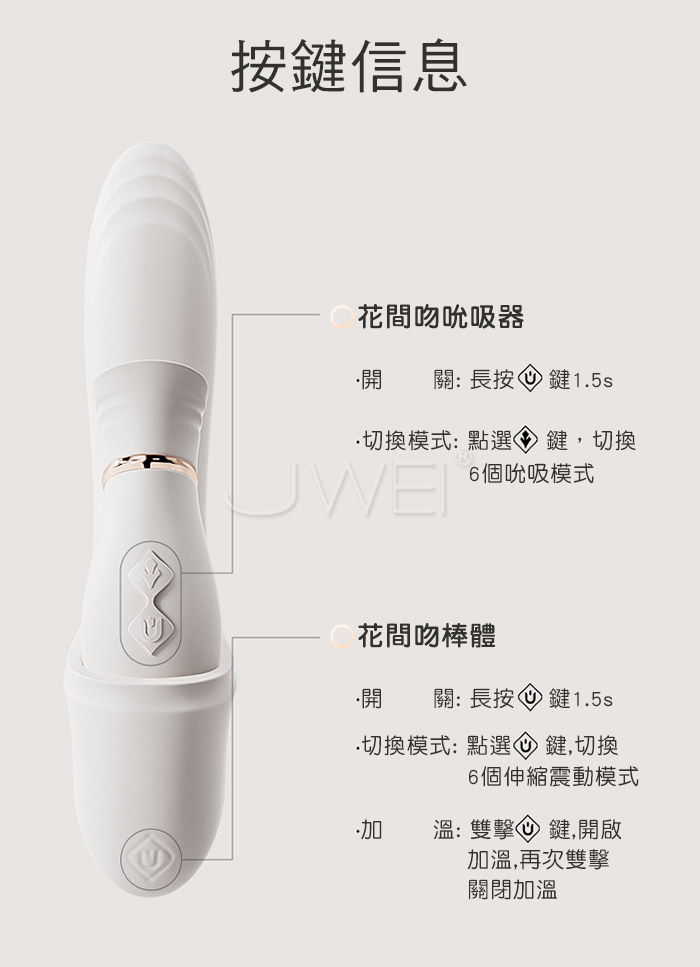 | 花間吻.6x6頻伸縮強震深吻吮吸 分離式加溫智能遠控按摩棒【基礎款】