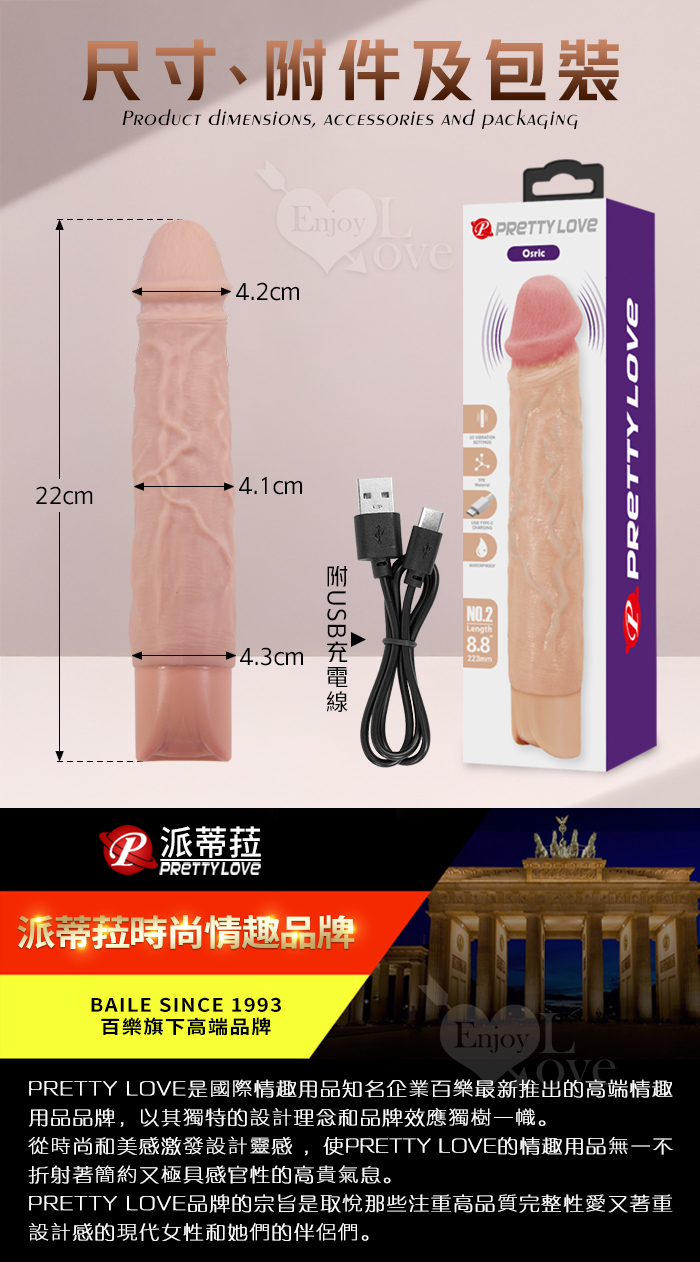 派蒂菈 ‧ Osric 奧斯里克 10段變頻震動 膚色肌仿真筋絡威猛老二造型充電按摩棒﹝NO.2/8.8″ 22cm﹞