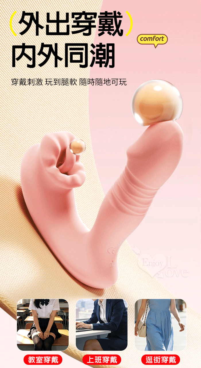 ROSELEX 唇逗 10頻雙馬達內外雙激震舌舔擊貼合穿戴按摩器 - 可手機APP遙控﹝具兩種操控模式﹞粉